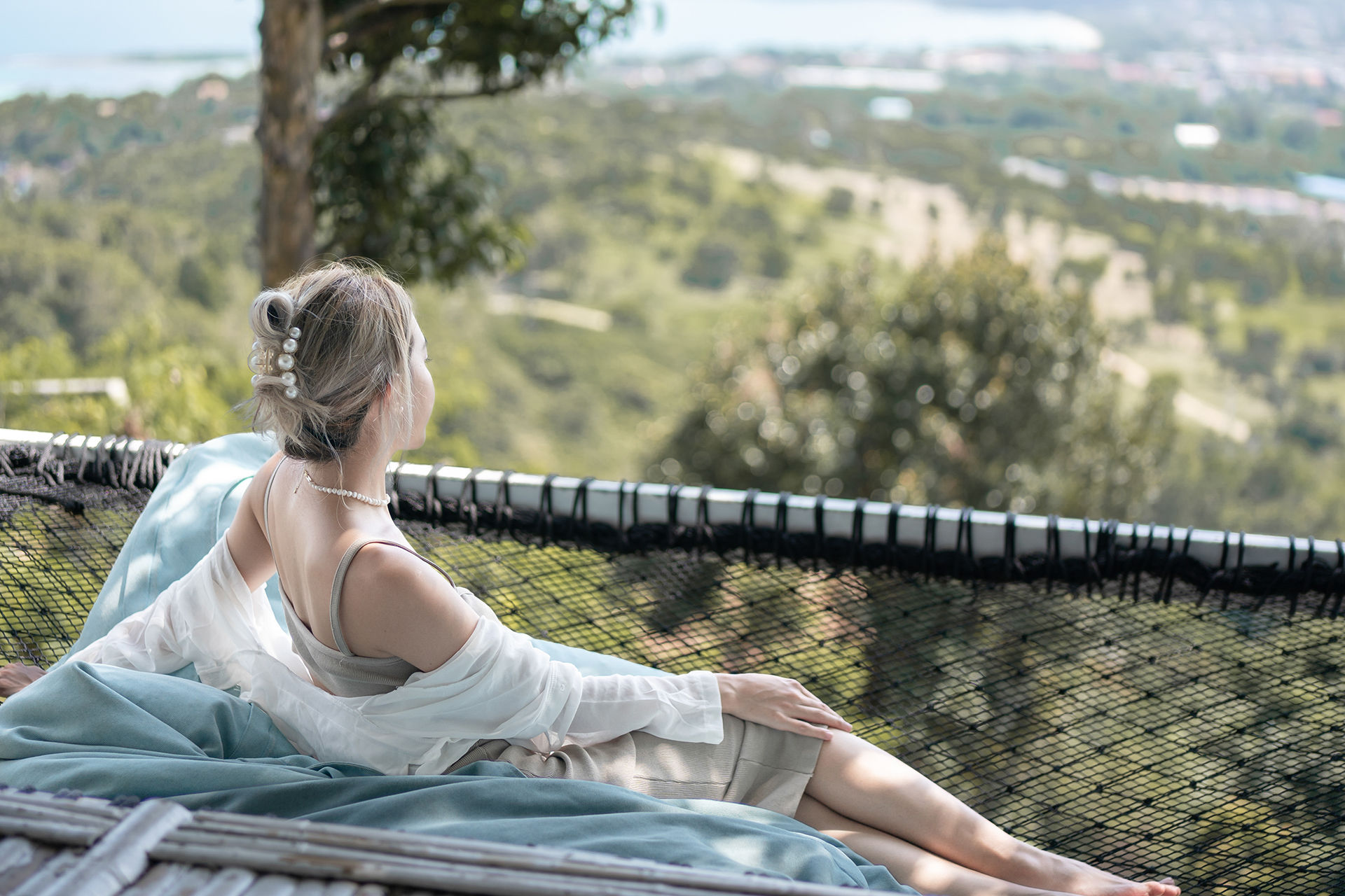 Beautiful Asian woman practicing meditation at home